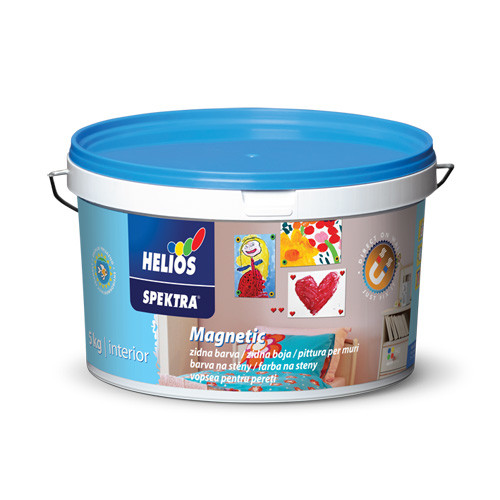 SPEKTRA Magnetic je temeljna notranja zidna barva z magnetnim delovanjem, ki omogoča oprijem magnetov neposredno na stenske površine. Izdelana je na osnovi materiala z magnetnimi lastnostmi, ki je črne barve, zato jo uporabljamo kot osnovni premaz, ki ga prebarvamo še z zaključnim dekorativnim premazom. V modernih stanovanjih skoraj ni več kovinskih površin, na katere bi lahko s pomočjo magnetov pritrjevali sporočila, izdelke naših najmlajših, posterje v sobah najstnikov itd. Če si ne želimo umazanih in poškodovanih sten zaradi uporabe lepilnih trakov, raznih lepilnih mas, risalnih žebljičkov in drugih načinov pritrjevanja, je SPEKTRA Magnetic odlična izbira. Za dober oprijem magnetov priporočamo nanos barve najmanj v treh slojih.