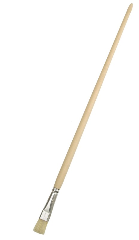 Čopič iz svetle naravne ščetine, na dolgem lesenem ročaju.